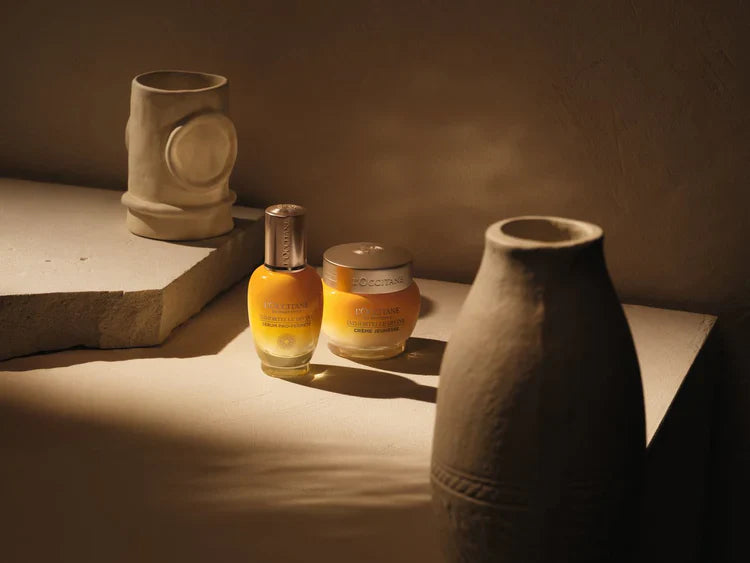 Ove napredne formule kombinuju organsko eterično ulje smilja, bogato aktivnim molekulama sa izuzetnim anti-age delovanjem, i kompleks biljnih aktivnih sastojaka. Ova snažna sinergija pomaže u borbi protiv vidljivih znakova starenja i koži pruža mladalački, blistav sjaj kojem težimo. Za maksimalne rezultate, preporučuje se korišćenje Immortelle Divine kreme u kombinaciji sa Immortelle Divine Losion, Immortelle Divine krema za područje oko očiju, Immortelle Divine Serum. Zajedno, ovi proizvodi čine sveobuhvatnu anti-age rutinu koja koži vraća čvrstinu, zaglađuje bore i otkriva njen svetliji, obnovljen izgled.