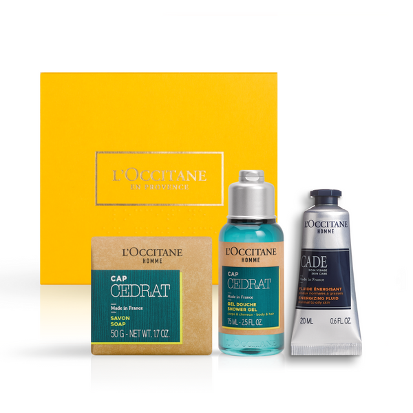 Osvežavajuća nega u praktičnom pakovanju! Cap Cedrat gel za tuširanje (75 ml) i sapun (50 g) donose citrusnu svežinu i energiju, dok Cade fluid za lice (20 ml) hidrira i umiruje kožu. Savršen poklon u elegantnoj mini kutiji – idealan za muškarce koji vole jednostavnu, ali efikasnu negu.