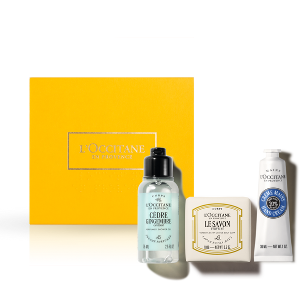 Elegantni mini poklon set osmišljen kao mali ritual opuštanja i nege. Osvežavajući Cèdre Gingembre gel za tuširanje (75 ml) budi čula toplim, začinsko-drvenim notama, dok čvrsti ultra bogati sapun sa šea buterom (100 g) nežno čisti i štiti kožu od isušivanja. Krema za ruke sa šea buterom (30 ml) pruža trenutnu mekoću i dugotrajnu hidrataciju, idealnu za svakodnevnu upotrebu. Upakovano u stilsku mini kutiju – savršen poklon pažnje za svaki trenutak.