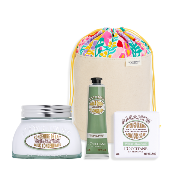 Otkrijte raskošnu negu tela uz Badem kolekciju – idealan poklon za one koji cene prirodnu lepotu i luksuznu rutinu. Set sadrži Badem koncentrovano mleko za telo (200ml) koje hidrira i učvršćuje kožu, Badem kremu za ruke (75ml) koja pruža instant mekoću i zaštitu, kao i Badem piling sapun (50g) za glatku i osveženu kožu. Sve dolazi u dekorativnom ukrasnom džaku, spremno za darivanje. Savršen izbor za nežan ritual opuštanja i svakodnevne nege.