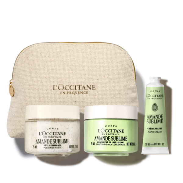 Idealan izbor za mini spa ritual koji kombinuje eksfolijaciju, intenzivnu negu i svakodnevnu zaštitu. Badem (Amande Sublime) piling pasta za telo nežno uklanja mrtve ćelije i priprema kožu za dalju negu. Badem (Amande Sublime) koncentrovano mleko za telo pruža bogatu hidrataciju i doprinosi čvršćem, zaglađenom izgledu kože, dok Badem (Amande Sublime) krema za ruke neguje i štiti, ostavljajući svilenkast osećaj. Set dolazi uz Poklon L'Occitane neseser – savršen za putovanja ili darivanje.