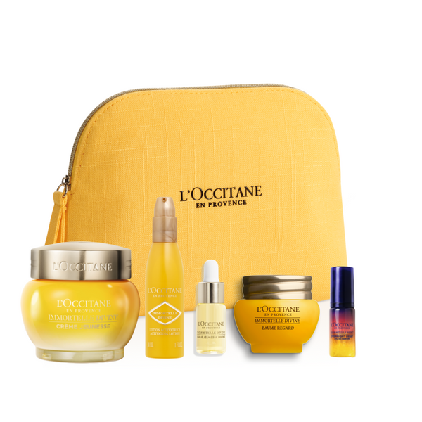 Prepustite se vrhunskoj anti-age rutini sa Immortelle Divine linijom koja kombinuje snagu prirode i efikasnost inovativne nege. Krema za lice pruža intenzivnu hidrataciju i zaglađuje bore, dok losion osvežava i priprema kožu za sledeće korake. Ulje za lice obnavlja i hrani, a balzam za oči umanjuje znake umora i pruža mladalački sjaj. Reset serum u mini pakovanju upotpunjuje ovaj ritual, dok praktičan neseser čini set savršenim za poklon ili putovanja.