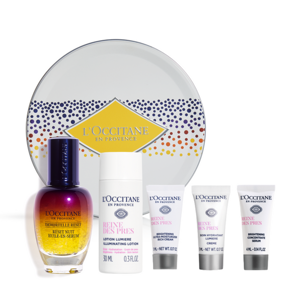 Ovaj set je savršen izbor za one koji žele da spoje anti-age inovaciju Immortelle Reset seruma i prirodnu svežinu Reine des Prés linije u svojoj dnevnoj rutini.