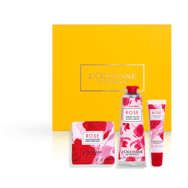Pronađite savršenu harmoniju nege sa našim elegantnim poklon setom. Ovaj luksuzni set uključuje balzam za usne, kremu za ruke i mirisni sapun - sve obogaćeno očaravajućim mirisom ruže. Dodatno uživanje dolazi u vidu L'Occitane žute kutije, stvorene da upotpuni vašu svakodnevnu rutinu nege kože.