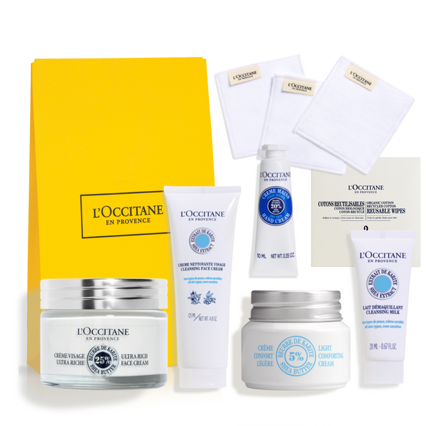 Ovaj bogati set spaja najbolje iz Šea linije, kreiran za sve kojima je potrebna dubinska hidratacija i osećaj zaštite tokom celog dana. Bogata krema za lice intenzivno hrani kožu, dok lagana krema sa 5% šea putera pruža nežnu svakodnevnu negu. Kreme za umivanje uklanjaju nečistoće i ostavljaju osećaj svežine, a mini krema za ruke obezbeđuje hidrataciju u pokretu.