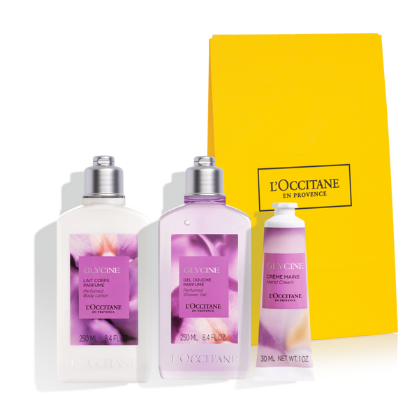 Uživajte u "Wisteria Rapsodiji", poklon setu koji uključuje gel za tuširanje, losion za telo i kremu za ruke, sve obogaćeno umirujućim mirisom glicinije. Ovaj set pruža kompletnu negu za vašu kožu, ostavljajući je mekom, hidratizovanom i blistavom, uz dodir elegantne poklon kutije.
